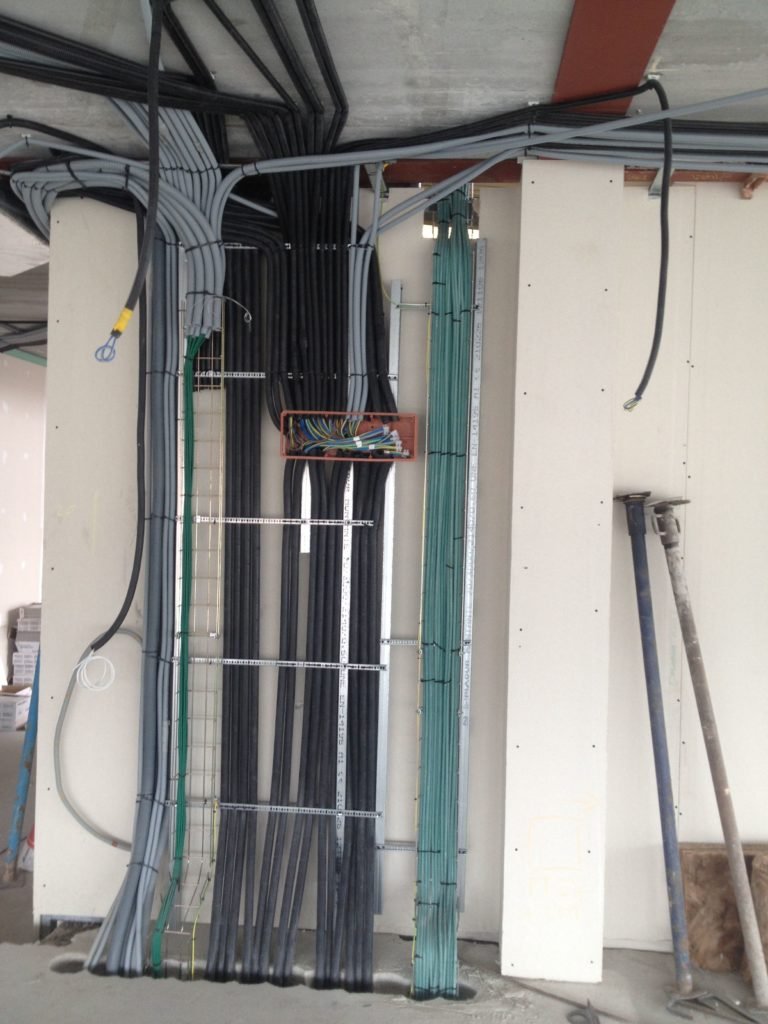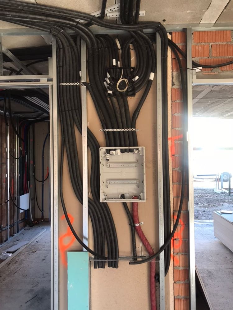 Realizamos la instalación eléctrica de cualquier edificio de viviendas, partiendo del punto de entrada de suministro eléctrico a un edificio por parte de una determinada compañía, hasta su finalización en los puntos internos de iluminación y otras toma de corriente, dentro de tu casa.